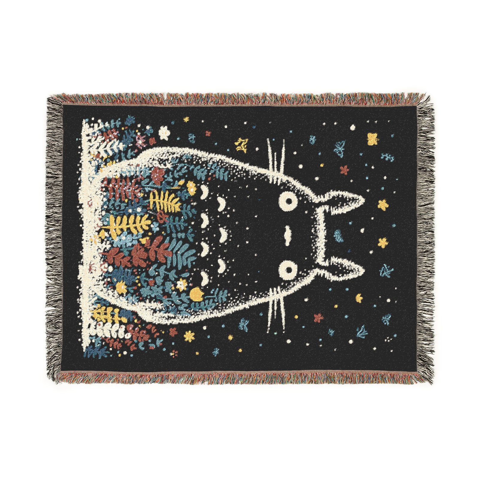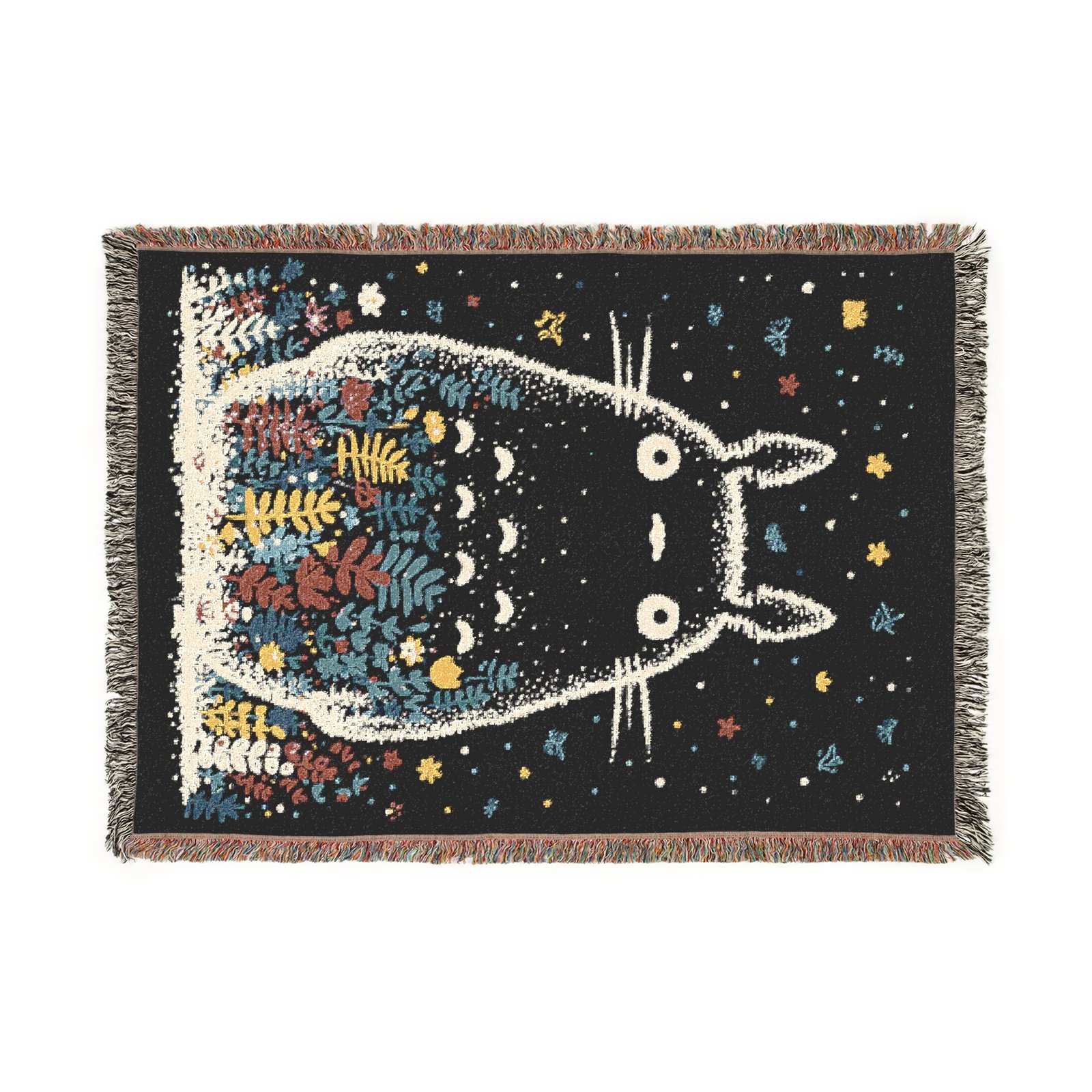 Wrap yourself in the warmth and magic of Studio Ghibli with this heirloom-quality Totoro woven blanket. Made from 100% cotton yarn and featuring vibrant fringed edges, this blanket is the perfect blend of comfort and luxury.